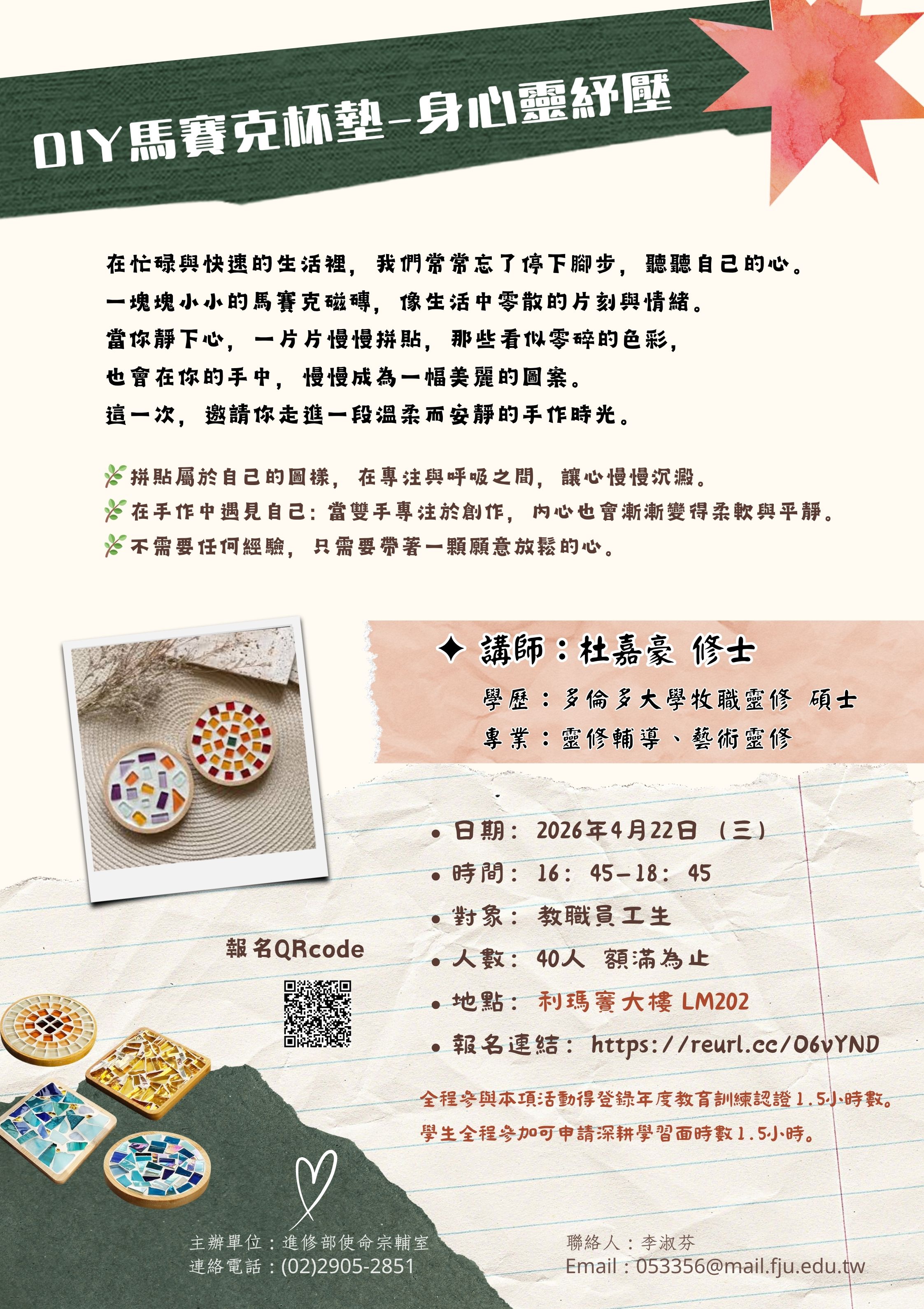 全程參與本項活動得登錄年度教育訓練認證 1.5 小時數。